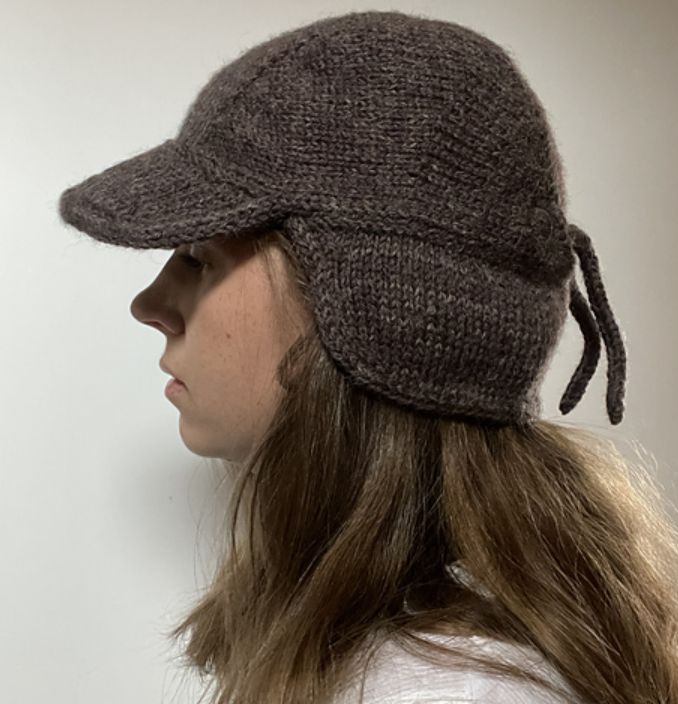 SNOWY SIDE CAP — вязаная шапка с ушками и козырьком, дополненная завязками сзади.